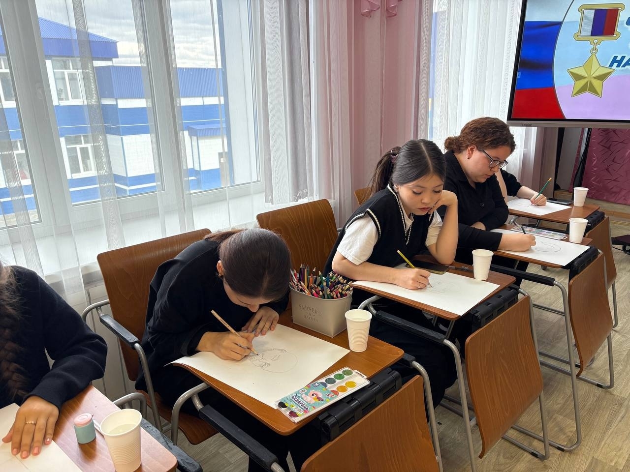 Его портрет запечатлели учащиеся 5-11-х классов. В то время, пока юные художники писали портрет героя, наш гость рассказывал о своем пути, что сделало акцию не только творческим, но и образовательным событием.