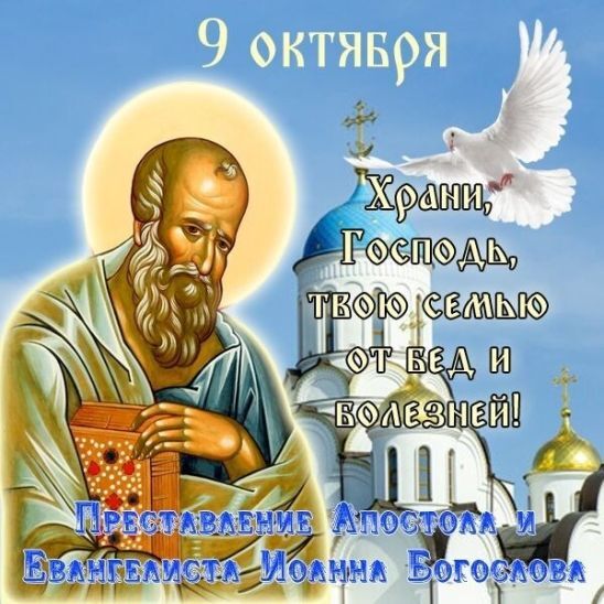 9 октября православная церковь празднует преставление апостола и евангелиста Иоанна Богослова — одного из двенадцати учеников Христа, автора Четвёртого Евангелия и книги Откровения.