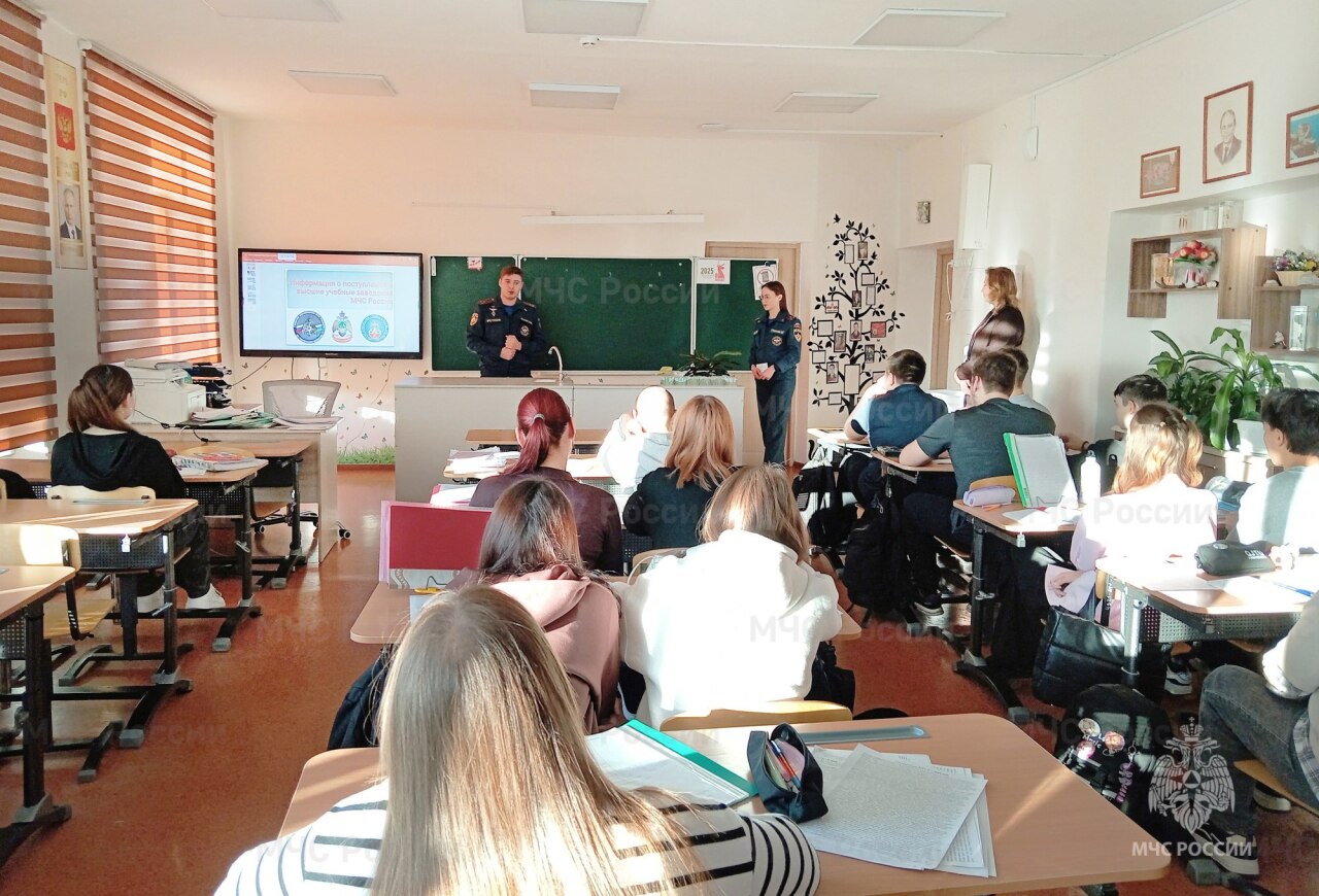 В Тюменской области сотрудники МЧС России проводят профориентационное мероприятие для старшеклассников.