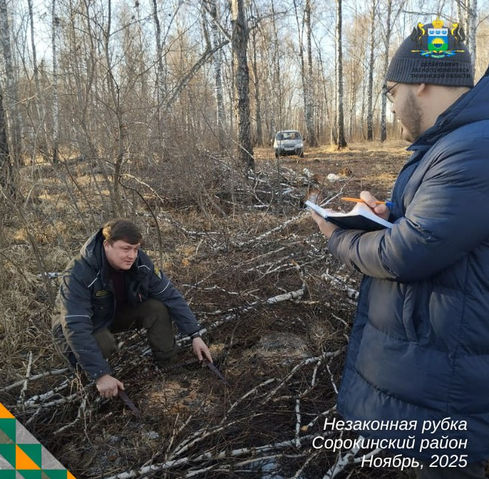 Ещё один факт незаконной рубки зафиксирован в Сорокинском лесничестве: там обнаружены две спиленные берёзы общим объёмом 4,3 м³. Ущерб составил 60,6 тысячи рублей.