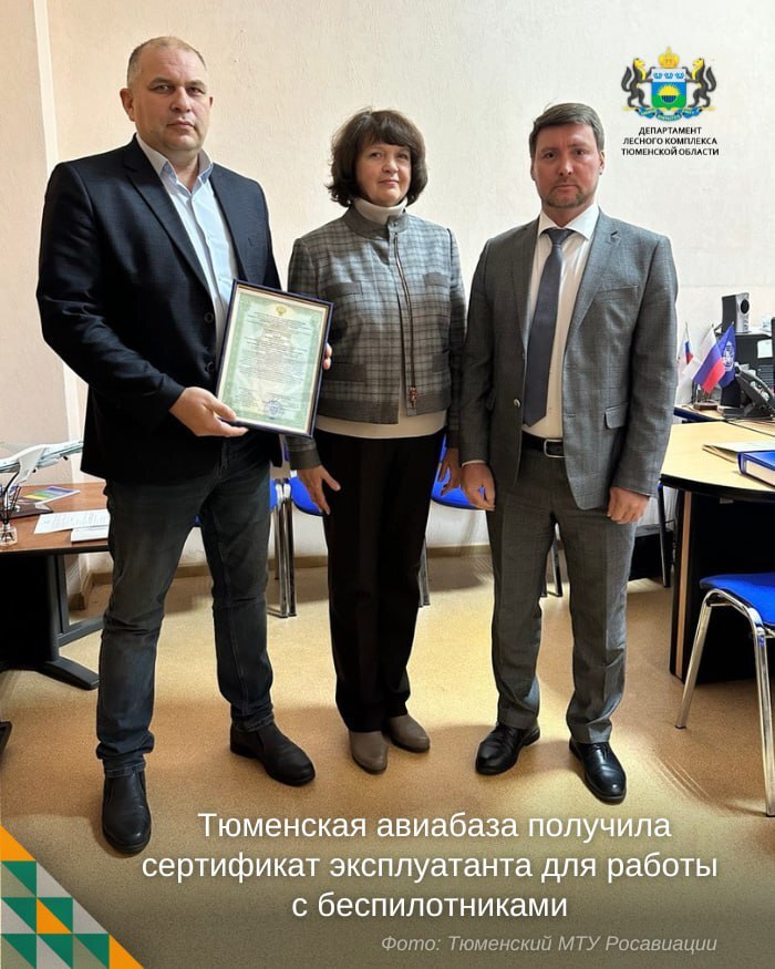 🔹 Сертификат выдан после проверки комиссии Тюменского МТУ Росавиации (vk.com/wall-228221353_532) и подтверждает, что специалисты авиабазы могут официально использовать беспилотники в природоохранных целях.