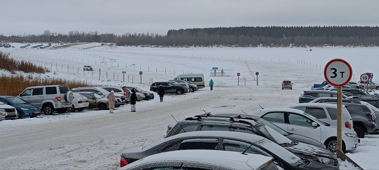 📎 Толщина льда сейчас составляет в среднем 40 сантиметров, покрытие ровное и безопасное для движения. На переправе организованы основная и резервная полосы. Установлены дорожные знаки, направляющие вешки.