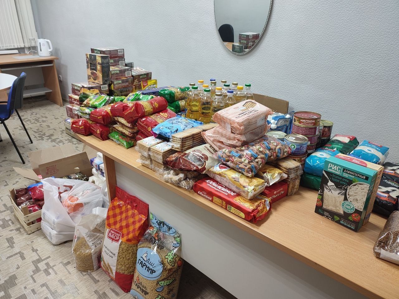 Благодаря молодогвардейцам Сорокинского округа мы отсортировали и упаковали собранные продукты: сахар, макаронные изделия, муку, черный чай, рыбные консервы, рисовую и гречневую крупы, растительное масло, сгущенное молоко и кондитерские изделия.