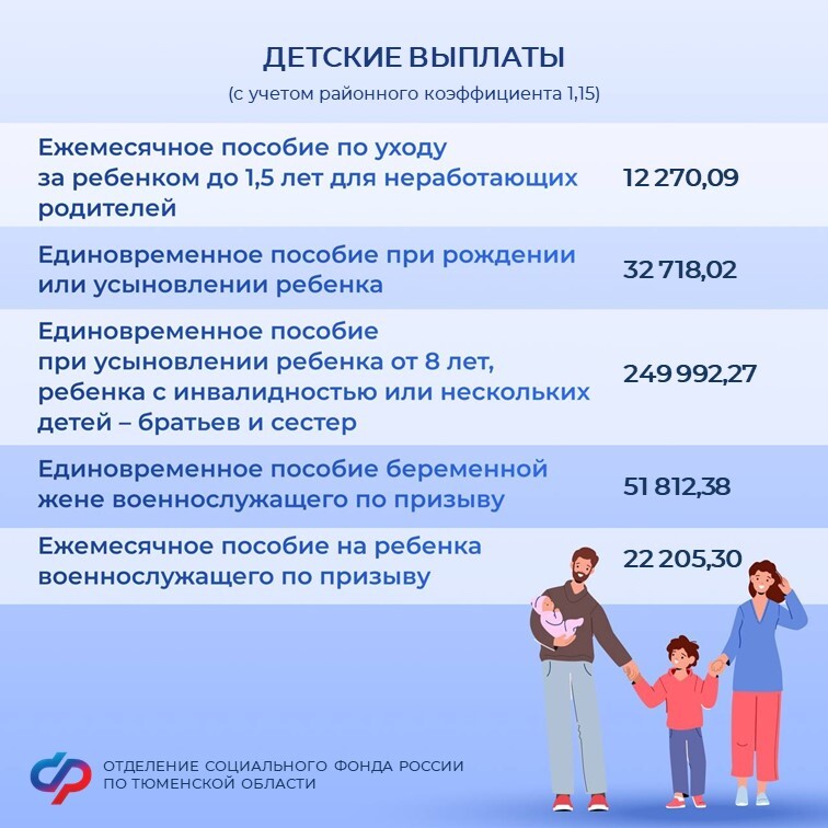 С 1 февраля 2026 года Отделение Социального фонда России по Тюменской области проиндексировало социальные и страховые выплаты, пособия и компенсации на 5,6 % в соответствии с постановлением Правительства РФ.