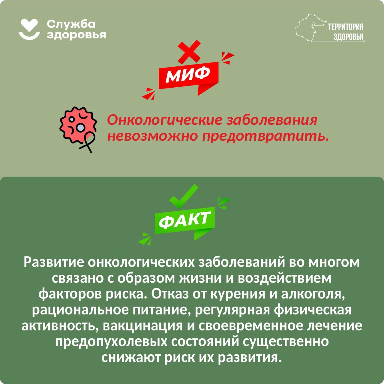В карточках подготовили для вас мифы и факты об онкологии.