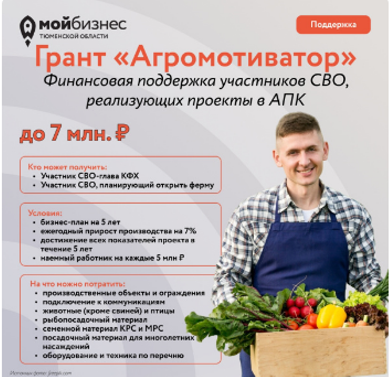 Поддержка предусмотрена в рамках государственной программы развития сельского хозяйства и регулирования рынков сельскохозяйственной продукции, сырья и продовольствия. Получателем гранта может стать гражданин Российской Федерации из числа ветеранов боевых действий специальной военной операции.
