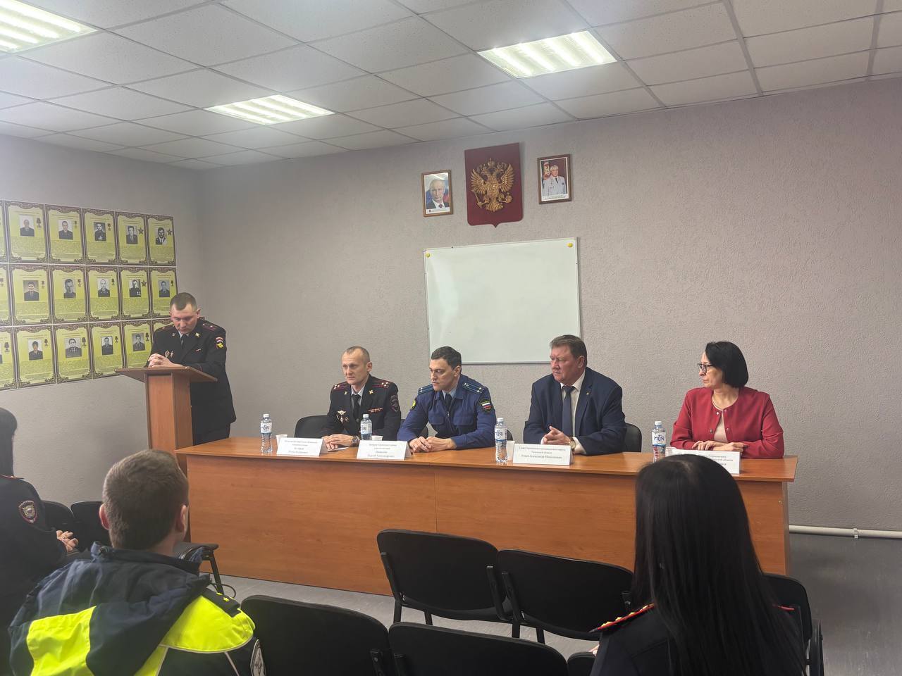 В торжественном мероприятии приняли участие начальник Межмуниципального отдела "Ишимский" полковник полиции Роман Валерьевич Валерьев, глава Сорокинского муниципального округа Александр Николаевич Агеев, прокурор Сергей Александрович Иващенко и заместитель главы округа Елена Николаевна Гараба.