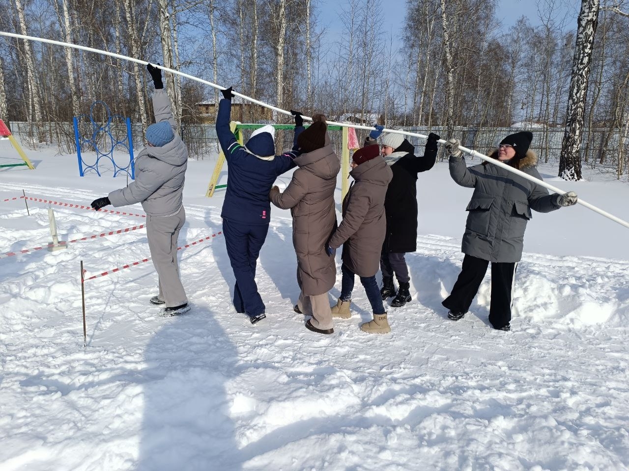 Учителя школ и педагоги ДОУ с удовольствием участвовали в увлекательной игре по станциям: на скорость возили друг друга на ватрушке, ловко освоили зимнюю рыбалку, шустро передвигались на гигантских лыжах и