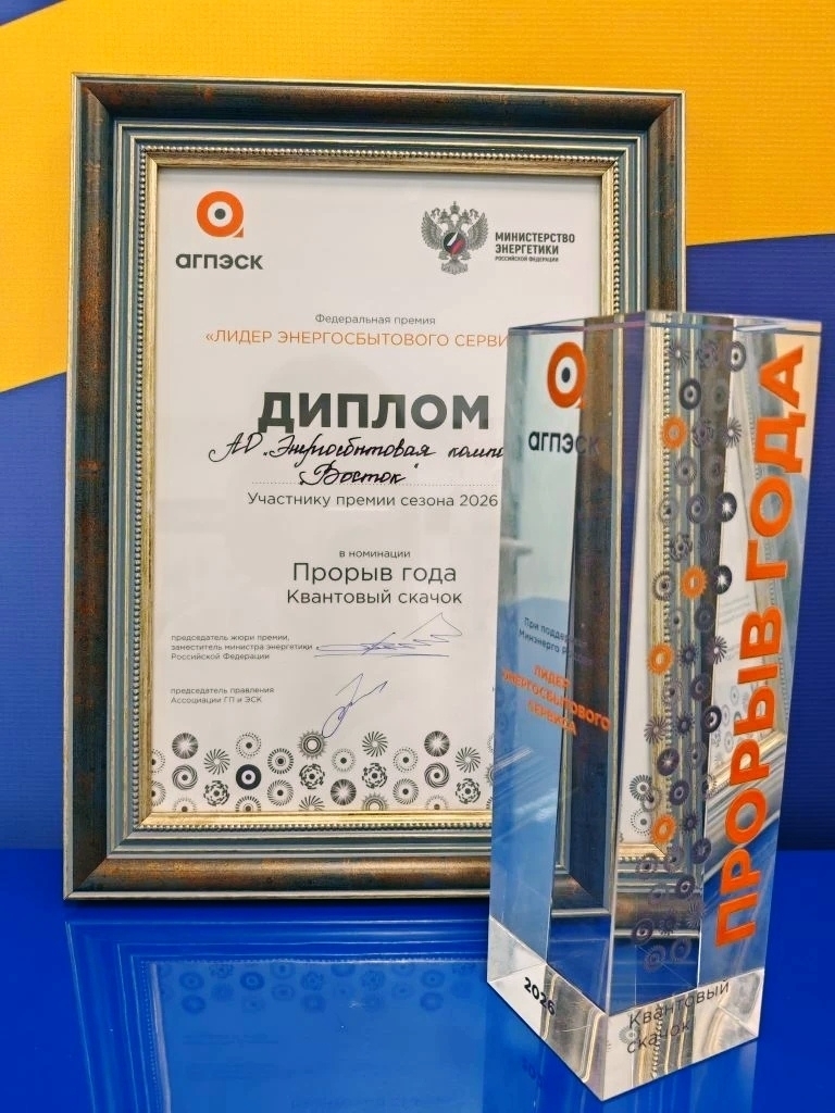 Энергосбытовая компания "Восток" стала победителем в номинации "Прорыв года. Квантовый скачок" по итогам федеральной премии "Лидер энергосбытового сервиса".