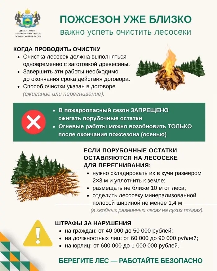 ❗С этого момента в лесах начнет действовать запрет на проведение огневых работ. Это значит, что сжигать порубочные остатки будет нельзя до окончания пожсезона (до осени).