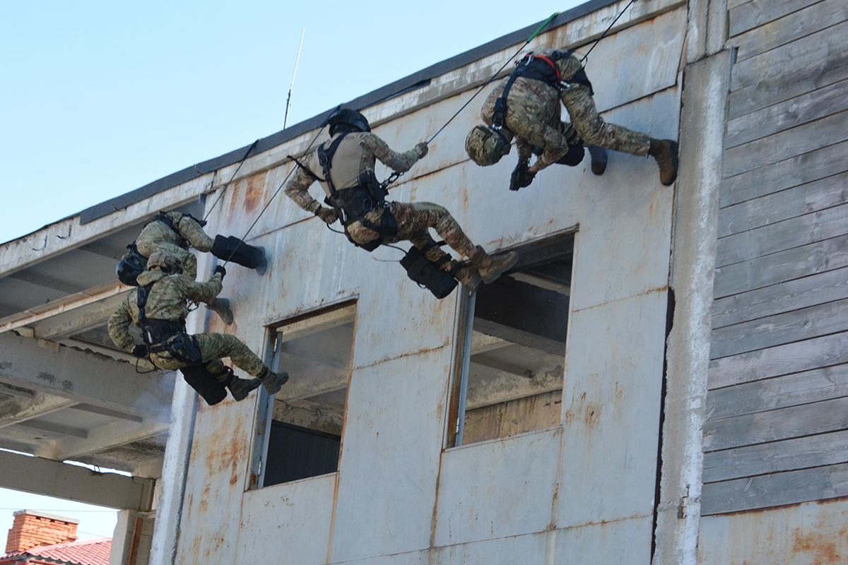 После торжественной части для семей бойцов и ветеранов проведена экскурсия по базе спецподразделения и продемонстрирована слаженность действий бойцов при выполнении задач по обезвреживанию условных преступников.