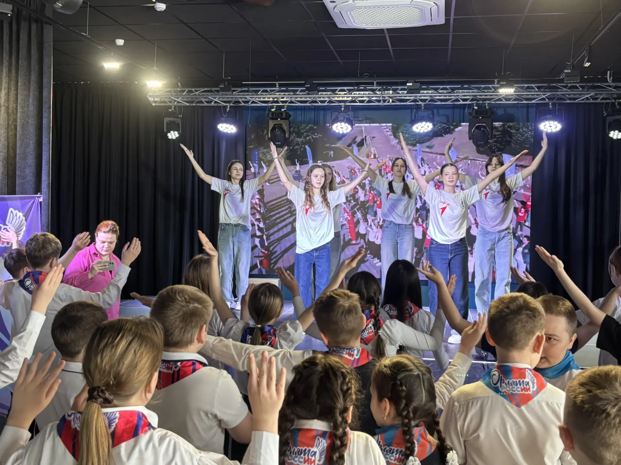 Торжественное мероприятие началось с гимна Российской Федерации — юные участники подпевали стоя, демонстрируя уважение к главным символам страны. Сразу после этого к собравшимся обратилась муниципальный координатор проекта "Навигаторы детства" Татьяна Лушкова.